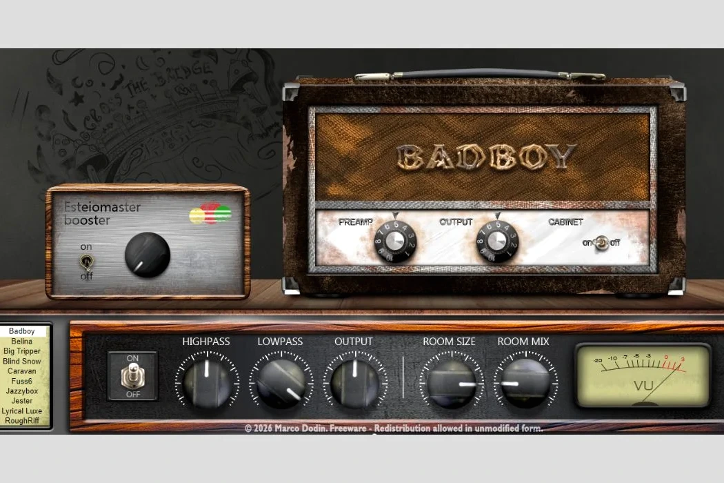 Marco Dodin sort son premier plugin — et il est gratuit. Le 28 mars 2026, Cross The Bridge arrive en VST3 : une suite d’amplis guitare légère mais surprenante, pensée pour ne pas bouffer le CPU et fonctionner aussi bien sur Windows que sur macOS (le même fichier d’installation pour les deux systèmes).